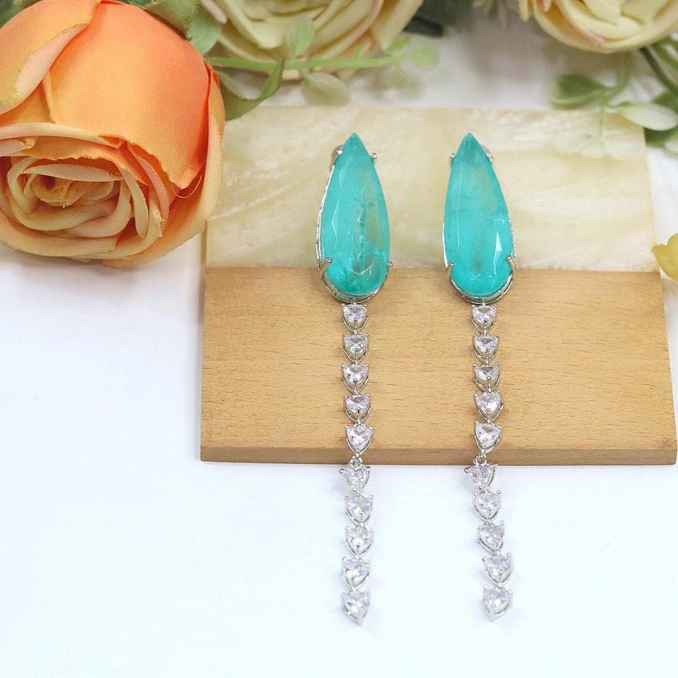 ต่างหูดีไซน์หรูหรา คุณภาพพรีเมียม ชุบเงิน ประดับด้วยเพชร CZ สำหรับงานแต่งงานและงานปาร์ตี้ คอลเลคชั่นสำหรับผู้หญิงและเด็กผู้หญิง