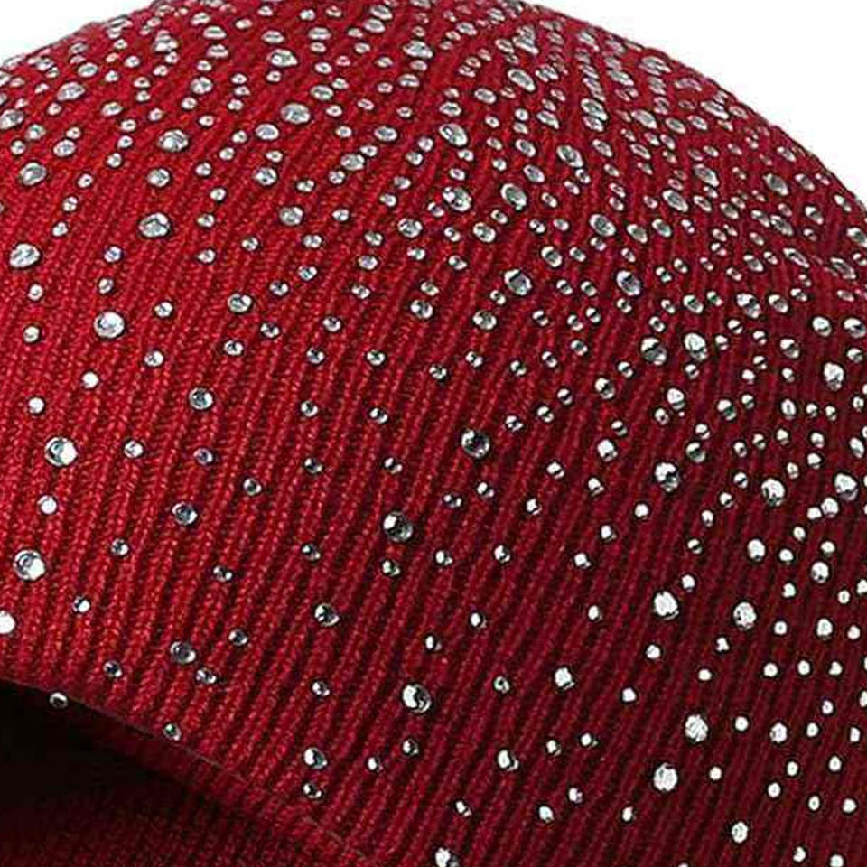 หมวกบีนนี่ประดับคริสตัลหรูหรา อบอุ่นสำหรับฤดูหนาว