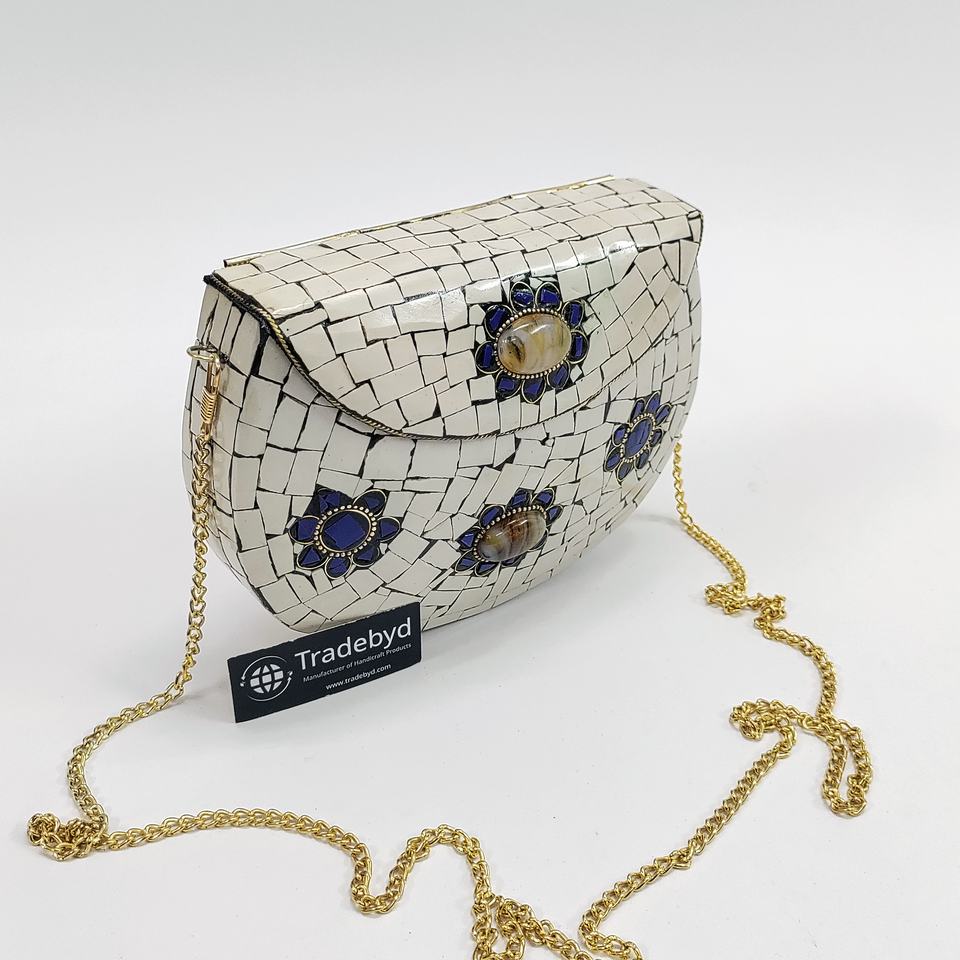 กระเป๋าคลัทช์โลหะสำหรับงานแต่งงานที่มีเสน่ห์กระเป๋าคลัทช์ประดับด้วยลูกปัดลายดอกไม้-สายรัดที่ถอดออกได้กันน้ำได้สำหรับงานเลี้ยงเจ้าสาว