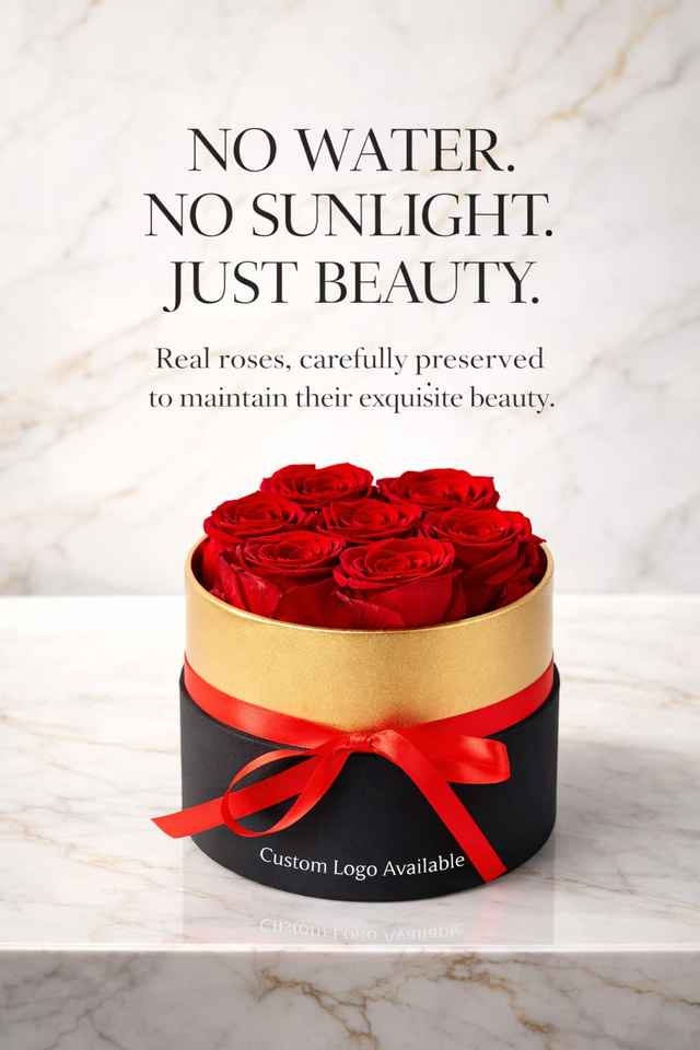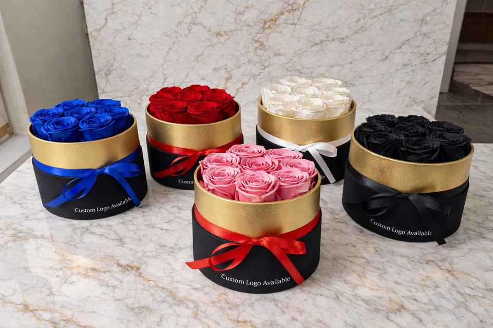 กล่องดอกกุหลาบอมตะทรงกลมสีชมพู Glamour Boutique ดอกไม้คงทนนาน 3-5 ปี ของขวัญวันวาเลนไทน์สำหรับเธอ