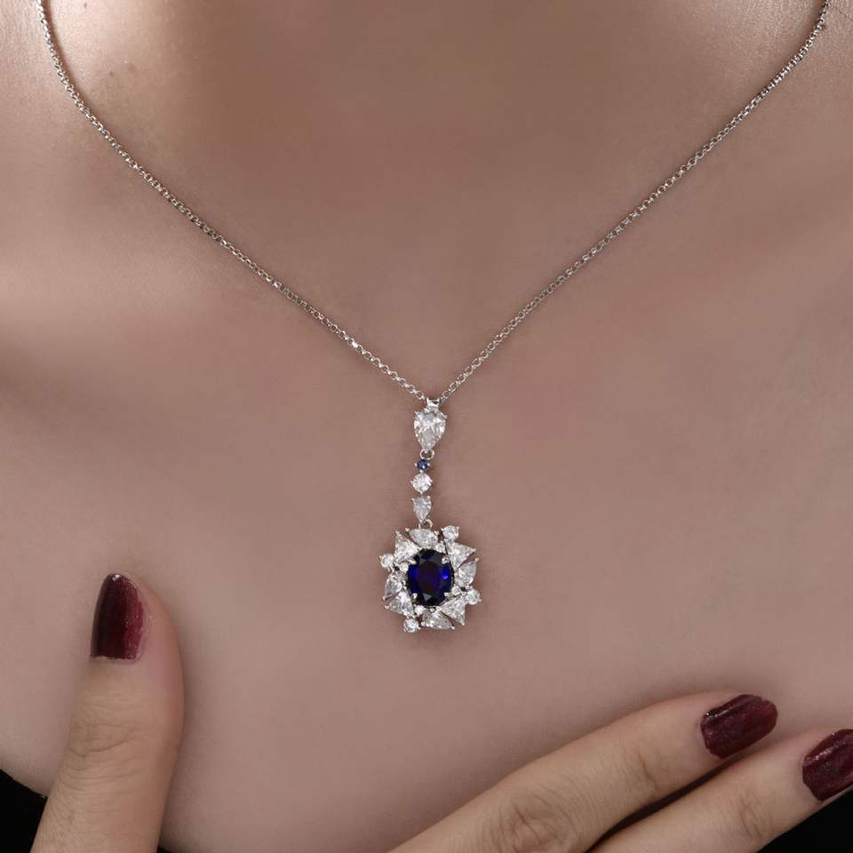 สร้อยคอเงินแท้ 925 ชุบโรเดียม ดีไซน์หรูหรา ประดับเพชรซิคอนทรงรี สำหรับผู้หญิง เหมาะเป็นของขวัญ