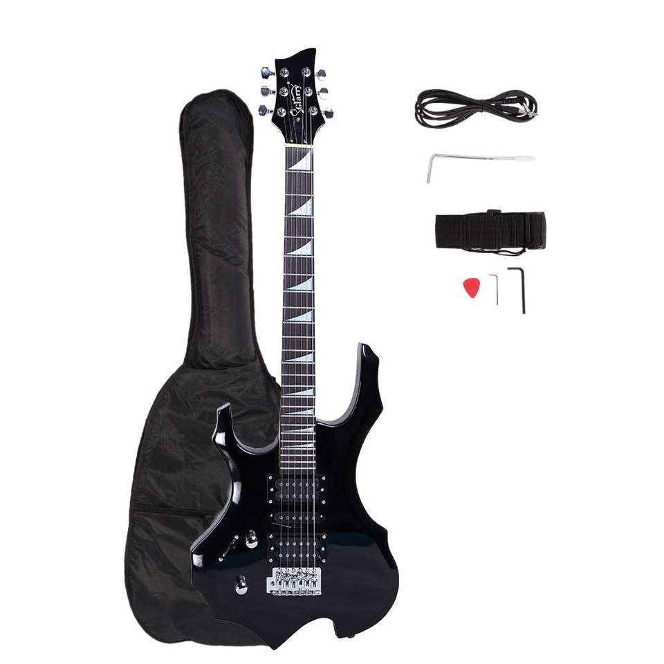 กีตาร์ไฟฟ้า Glarry สำหรับคนถนัดซ้าย สีดำ ปิ๊กอัพแบบ HSH คอไม้เมเปิล ฟิงเกอร์บอร์ดไม้ดำ ตัวกีตาร์ไม้บาสวูด พร้อมชุดอุปกรณ์