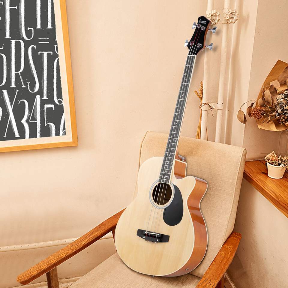 กีตาร์เบสโปร่งไฟฟ้า 5 สาย รุ่น Glarry พร้อม EQ 4 แบนด์, สีเบอร์ลี่วูด, ฟิงเกอร์บอร์ดไม้โรสวูด, คอไม้เมเปิล, ตัวบอดี้ไม้บาสวูด