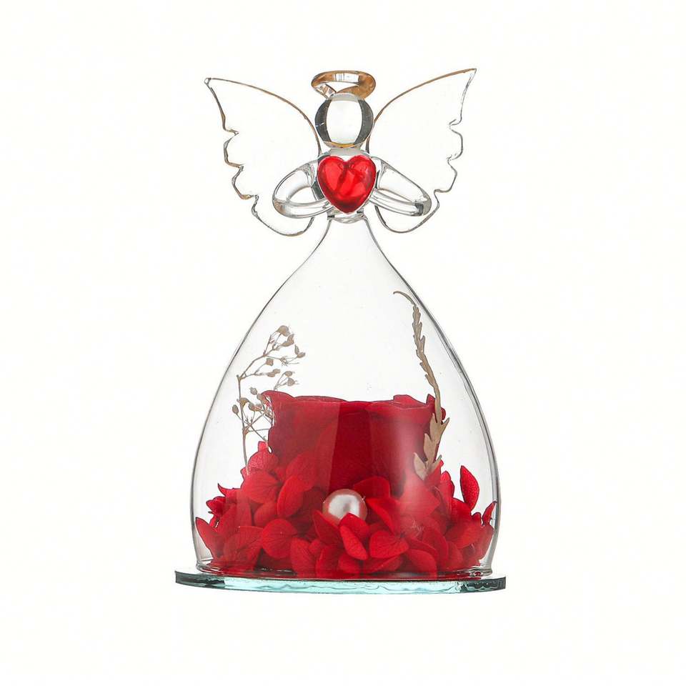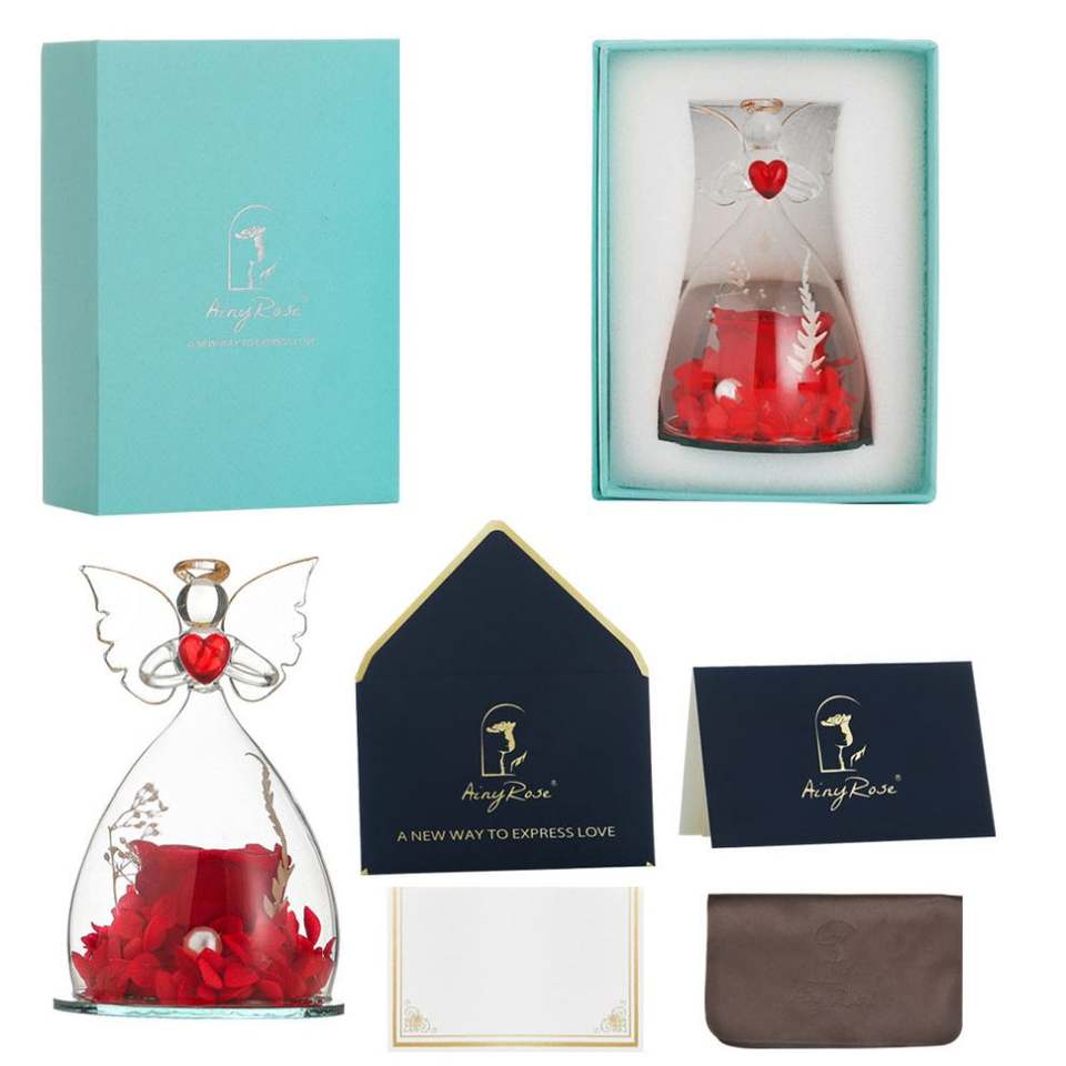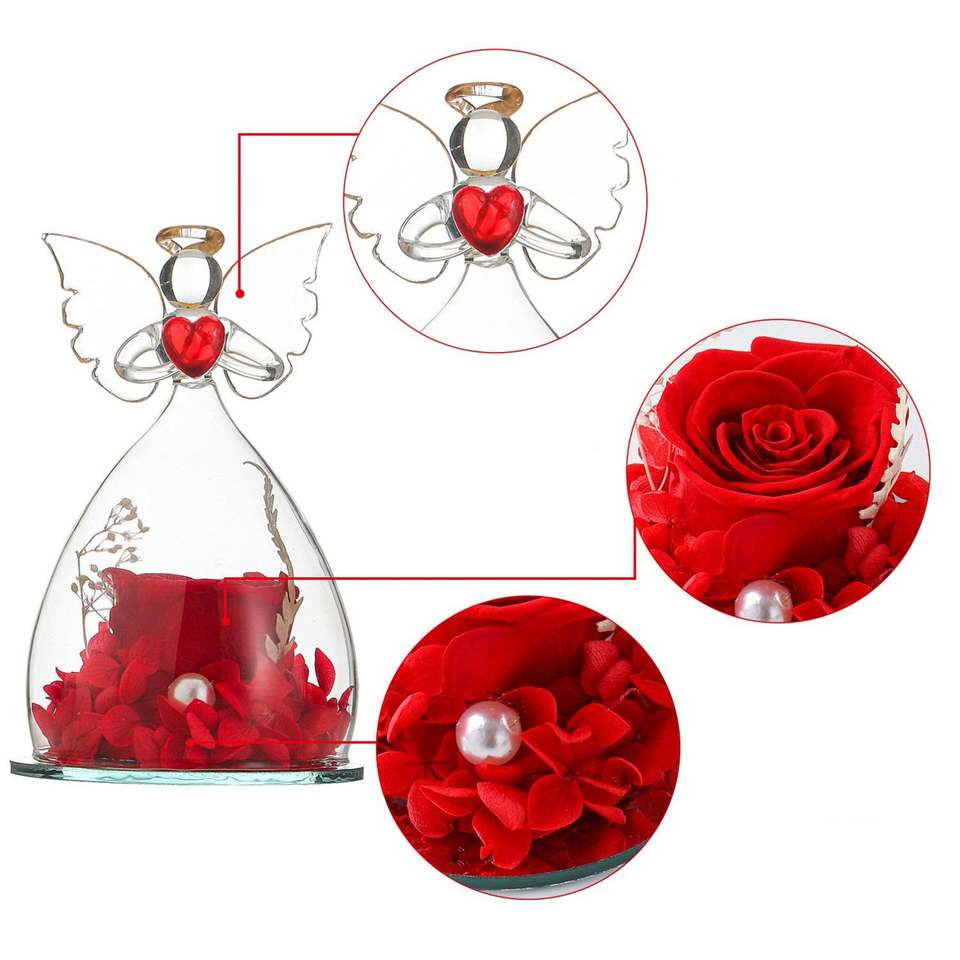 ของขวัญวันเกิดแก้วรูปนางฟ้า พร้อมดอกกุหลาบในกล่องรูปทรงดอกไม้ รักษาความสดชื่นของดอกกุหลาบ สำหรับวันรับปริญญา วันครบรอบ วันคริสต์มาส วันวาเลนไทน์ พร้อมคุณสมบัติไฟส่องสว่าง