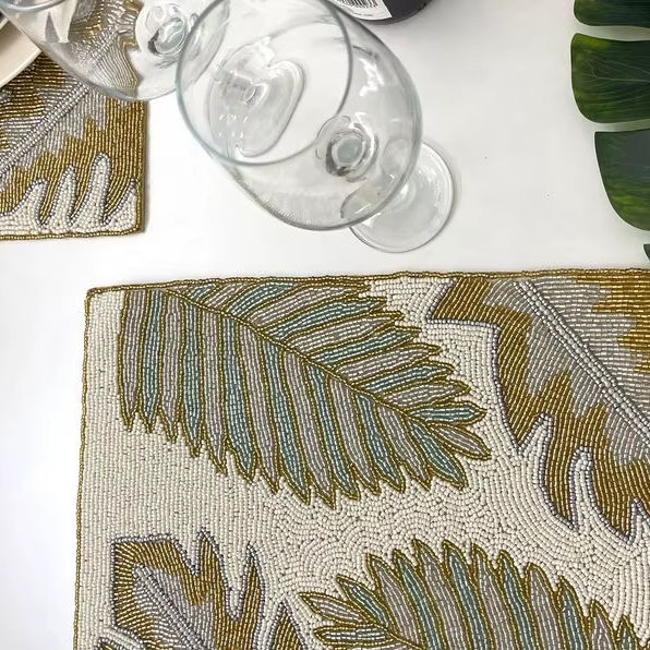 แผ่นรองจานทรงกลมประดับลูกปัดแก้ว ขนาด 15 นิ้ว เป็นมิตรกับสิ่งแวดล้อม ทันสมัย หรูหรา สำหรับงานเลี้ยงและงานแต่งงาน