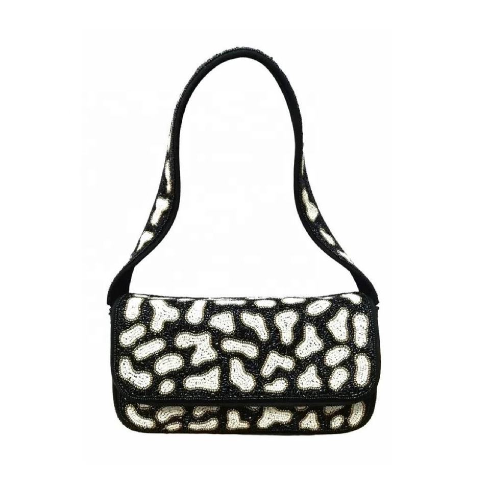 กระเป๋าสะพายไหล่แบบพกพาสำหรับผู้หญิง ลายปักเรขาคณิต ประดับลูกปัดแก้ว สายสะพายเส้นเดียว ขนาดเล็ก ใช้ได้ทุกวัน สำหรับใส่เครื่องสำอางและเดินทาง