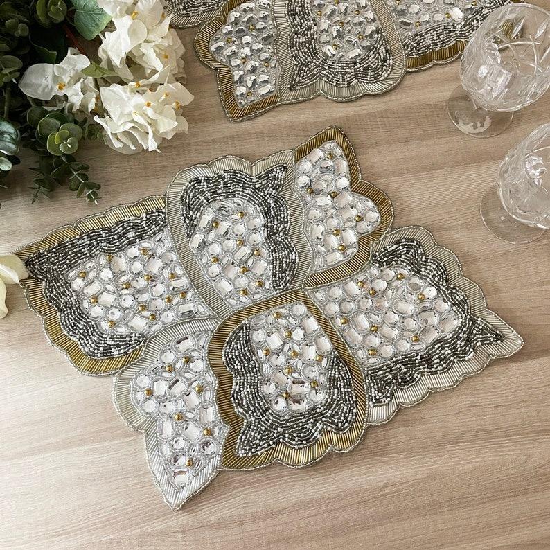 แผ่นรองแก้วลูกปัดแก้ว แผ่นรองจานทอ แผ่นรองจานคริสต์มาส แผ่นรองจานทรงกลม