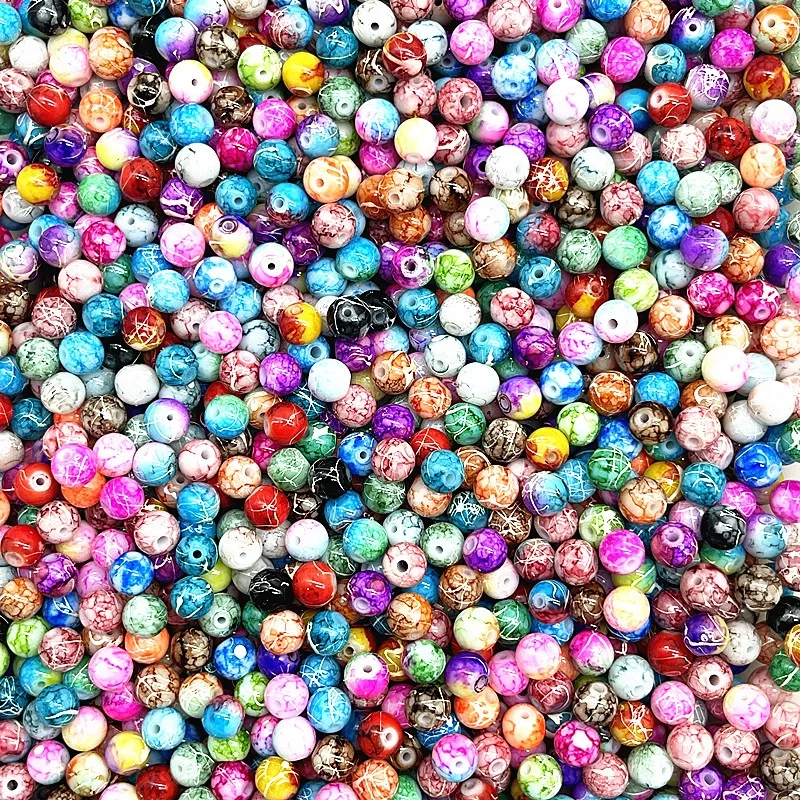 ลูกปัดแก้วหลากสีทรงกลมแบบเจาะรูเต็มรูปแบบ บรรจุในถุง OPP สำหรับงาน DIY งานฝีมือ ทำเครื่องประดับ คริสตัล แลมป์เวิร์ค