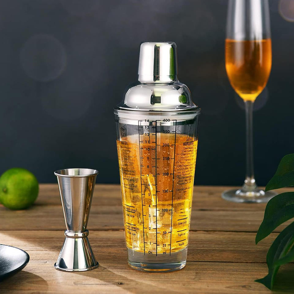 แก้วบอสตันเชคเกอร์ 400 มล. สแตนเลสสตีล พร้อมสเกลวัดปริมาณ สำหรับชงชาและค็อกเทล
