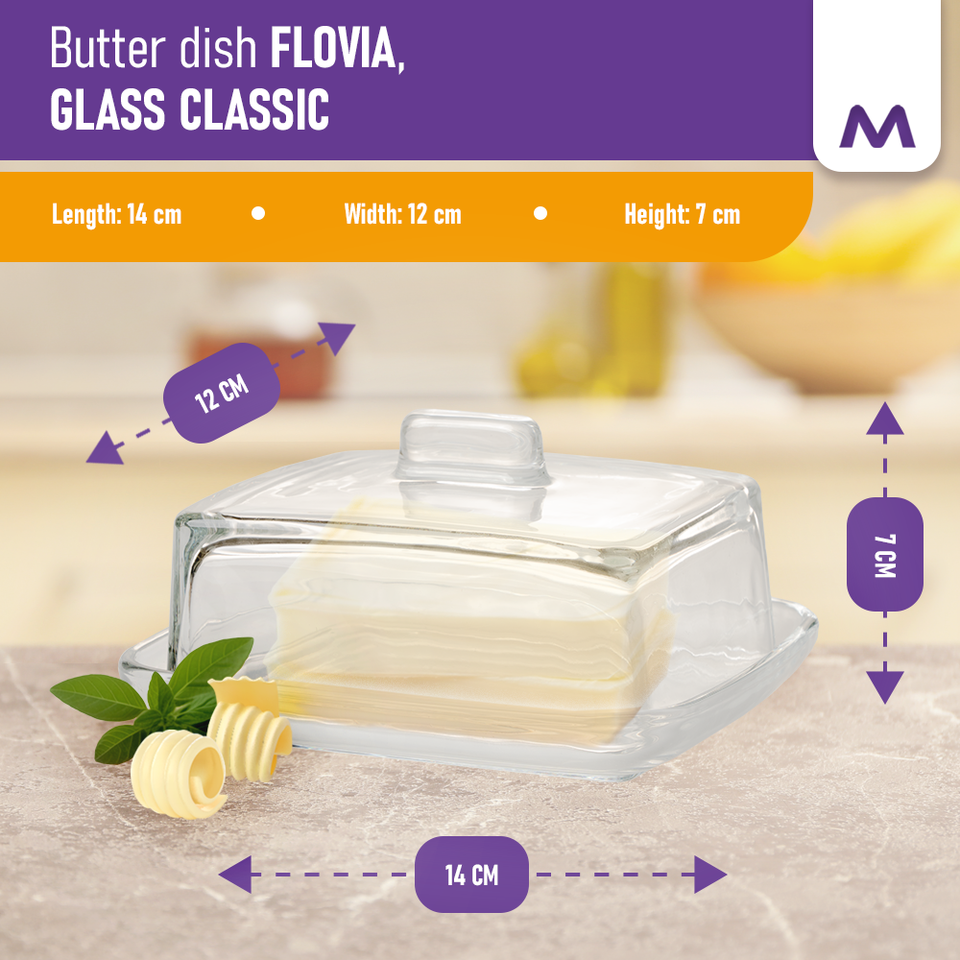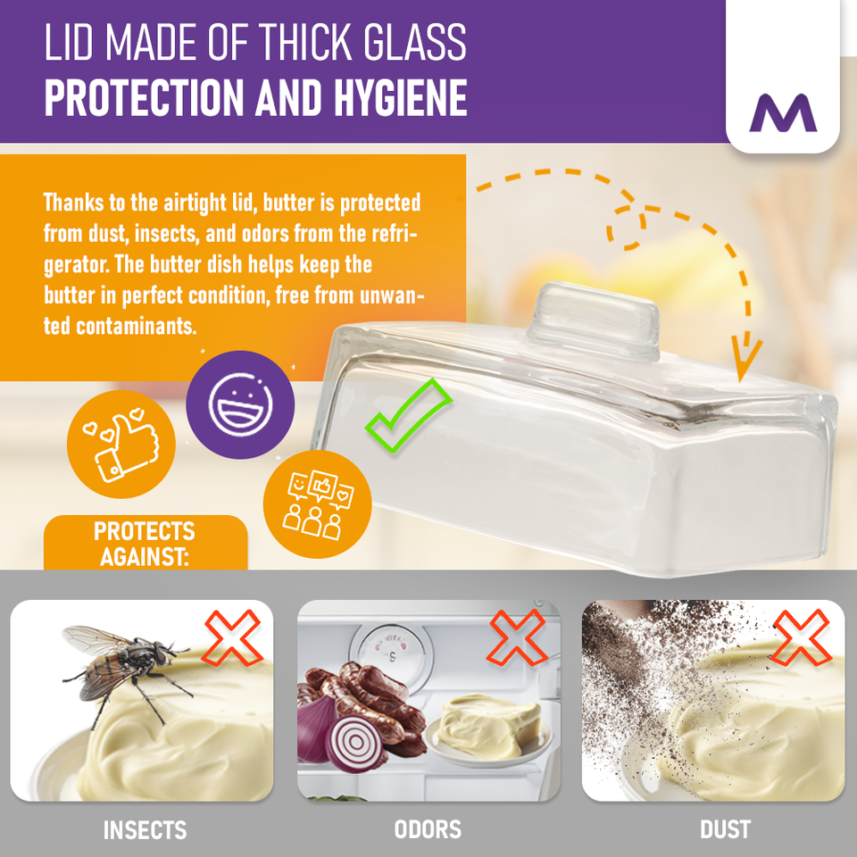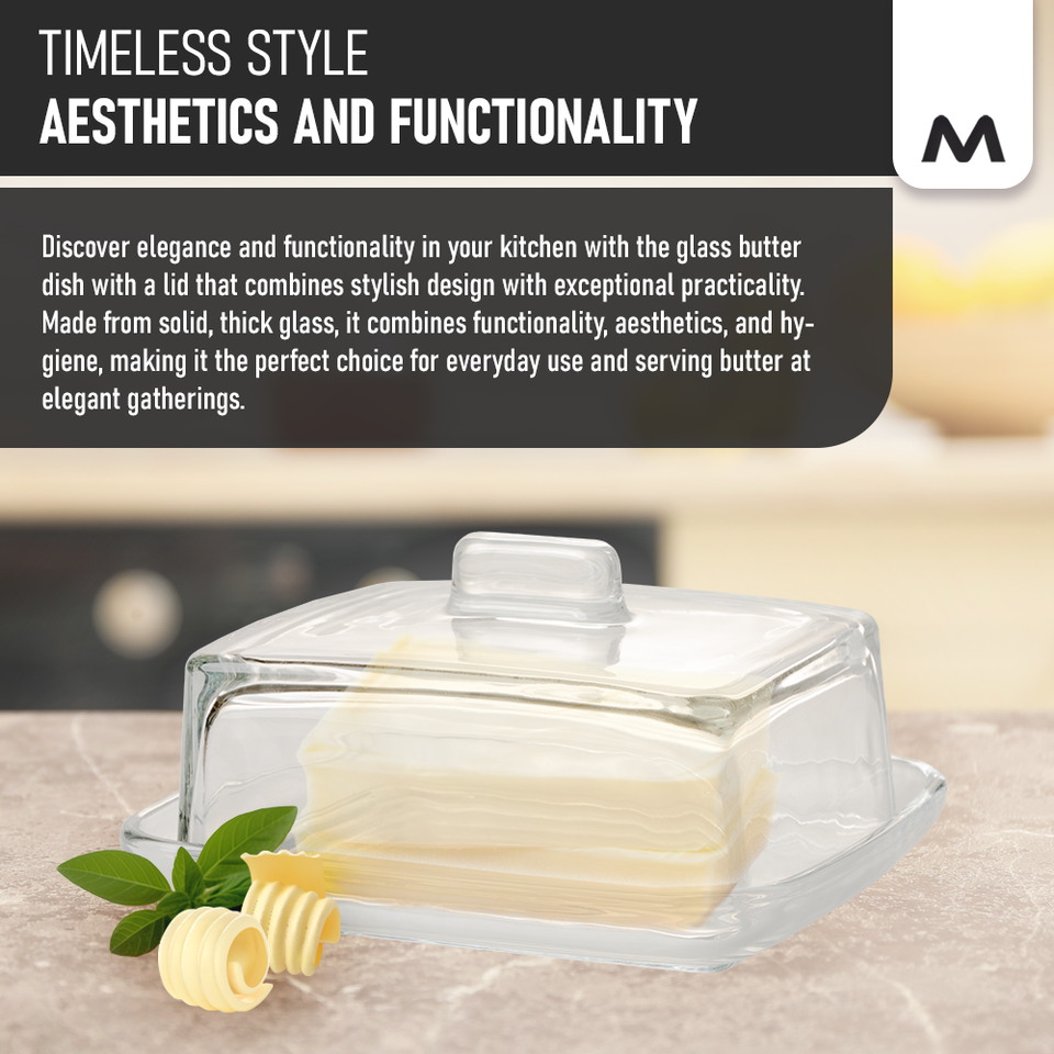 จานใส่เนยแก้วใส่กล่องเนยใสสำหรับใส่ชีสพร้อมฝาปิดและที่จับ-เครื่องล้างจานปลอดภัย