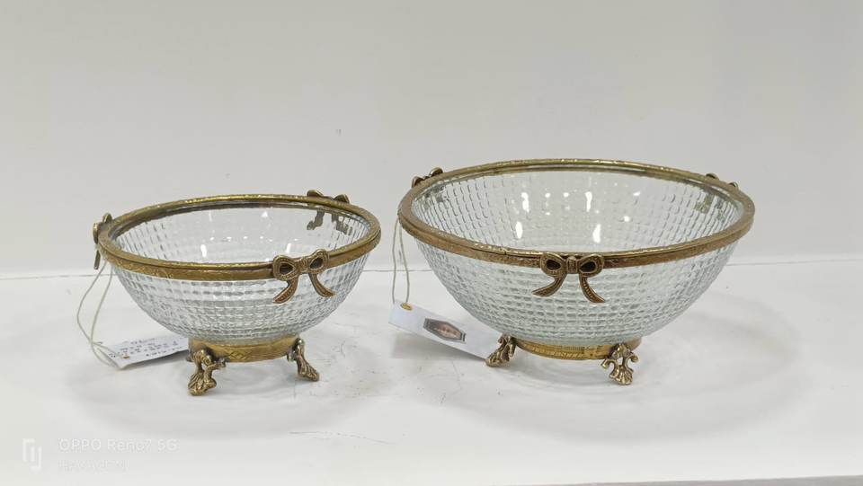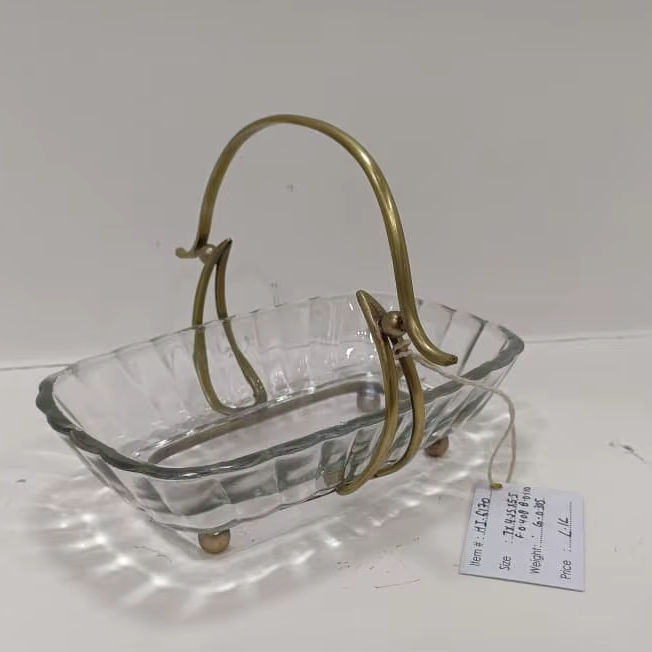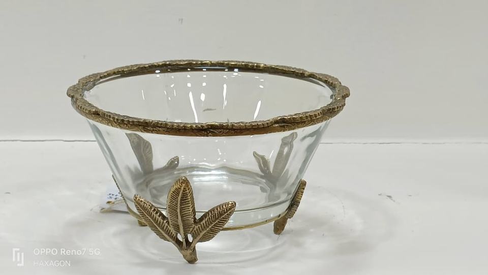 Glass Chocolate Bowl Restaurant Tableware Decoration Fruit Bowl Handmade Gold Color Clear Glass