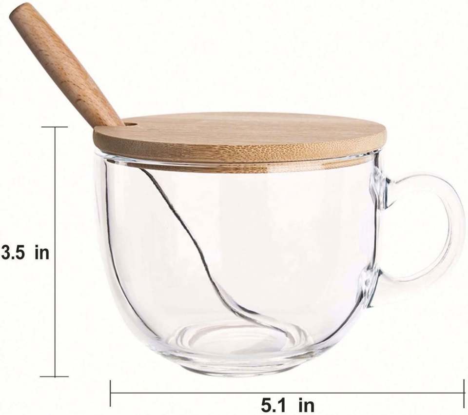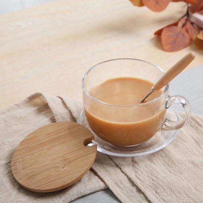 แก้วกาแฟใส 15 ออนซ์ พร้อมฝาไม้ไผ่และช้อน