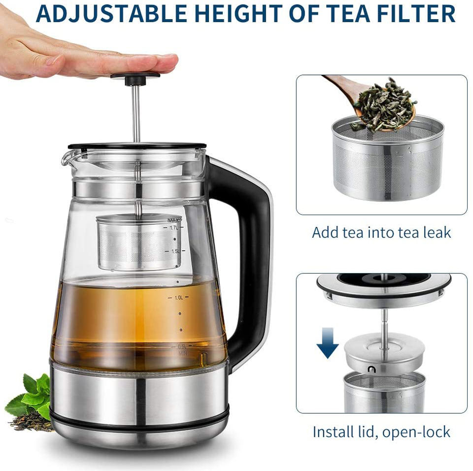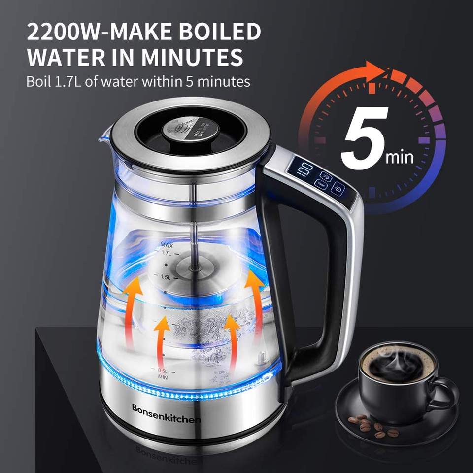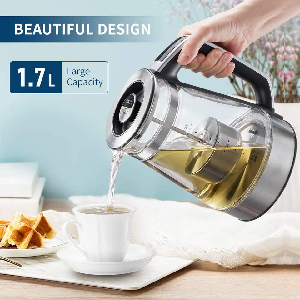 กาต้มน้ำไฟฟ้าแก้ว Marado พร้อมระบบควบคุมอุณหภูมิ ขนาด 1.8 ลิตร 220v 110v ทำจากสแตนเลสและแก้ว