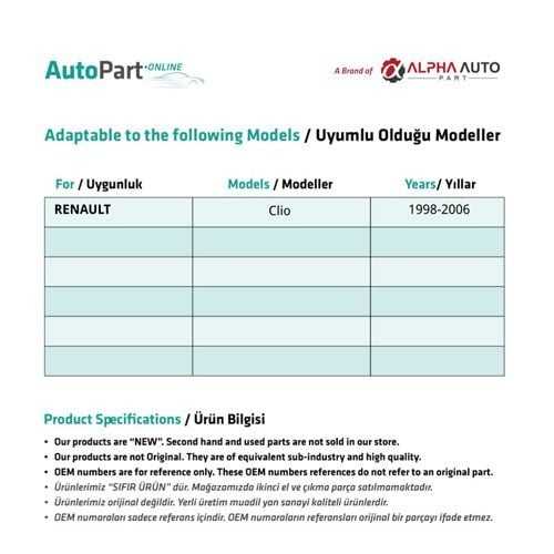 ชุดซ่อมกระจก-ขวาและซ้ายสำหรับ Renault Clio-ชุดประตู2 (จัดส่งจากผู้ผลิตไก่งวง) รหัสผลิตภัณฑ์: FD113203