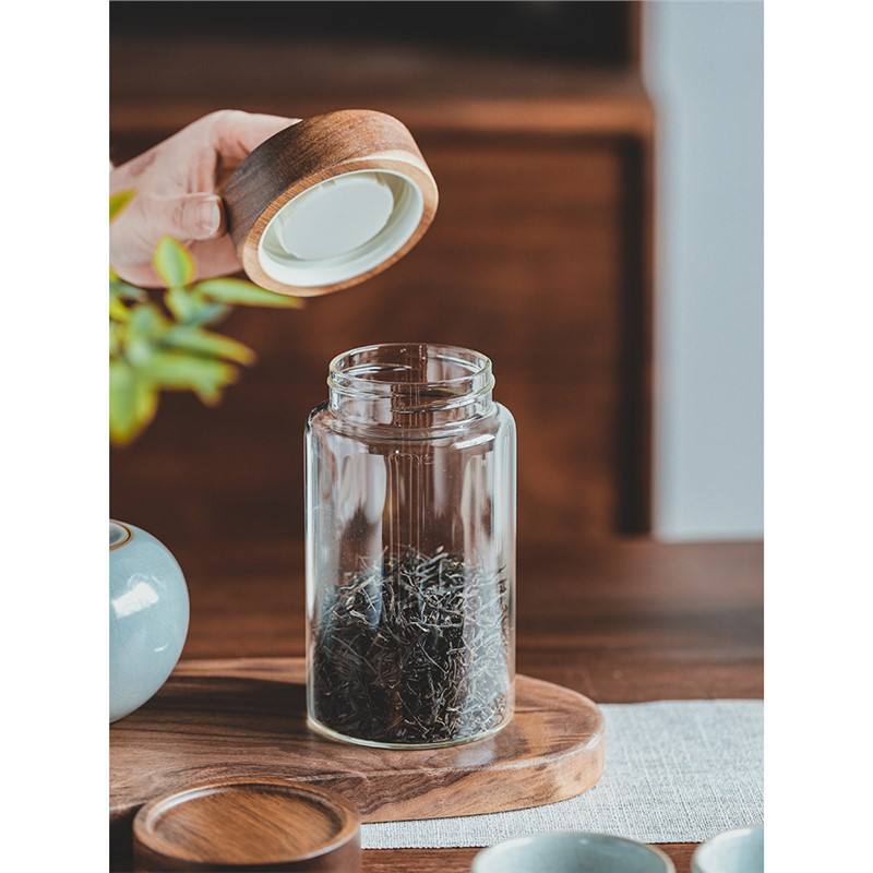 กระปุกชาแก้วฝาไม้ไผ่ กระปุกเก็บรักษาความสดแบบสุญญากาศ สำหรับชา ดอกไม้ น้ำตาล ใช้ในครัวเรือน ความจุน้อยกว่า 300 มล.