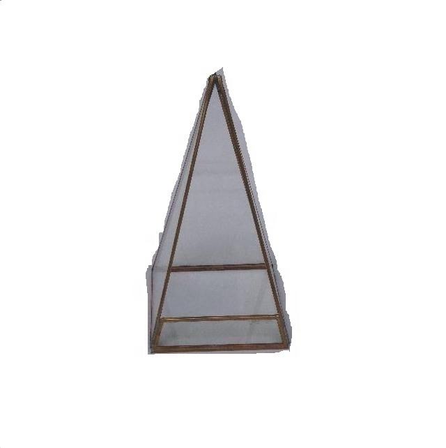 กระถางต้นไม้ทรงพีระมิดทำจากแก้วและทองเหลือง สำหรับจัดสวนในร่ม ตกแต่งโต๊ะกลาง เหมาะสำหรับปลูกไม้อวบน้ำและกระบองเพชร