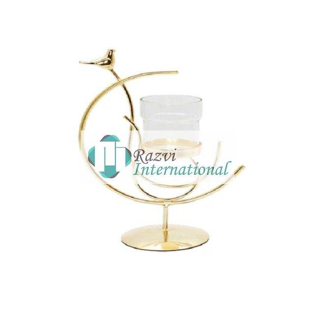 เชิงเทียนทำจากแก้วบนจานสีทองเชิงเทียนสำหรับวางบนโต๊ะของตกแต่งงานแต่งงาน