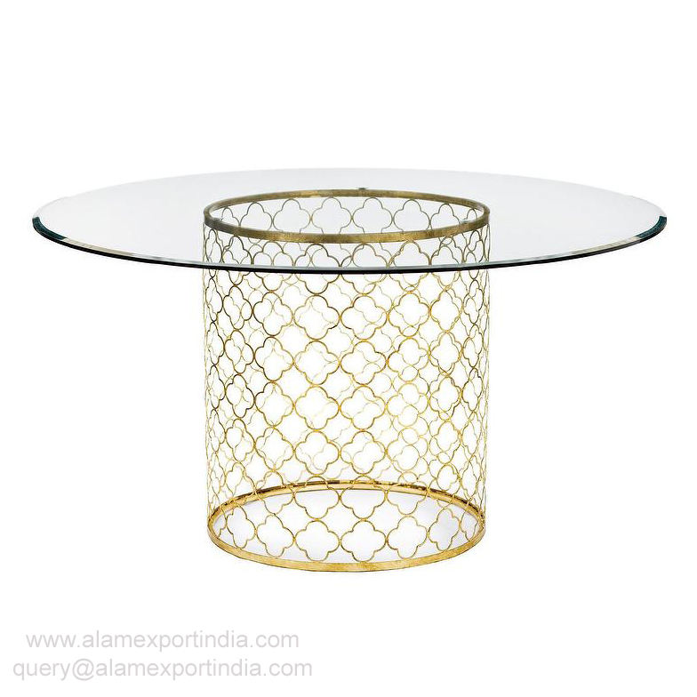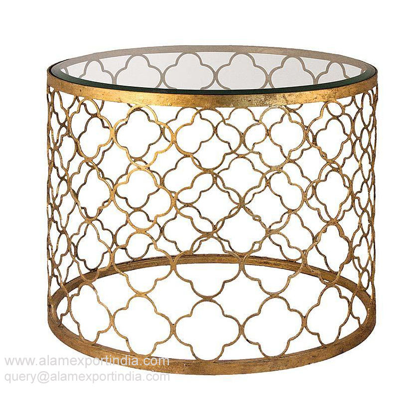 โต๊ะกาแฟกระจกเทมเปอร์ใสพร้อมกรอบโลหะสีทองเฟอร์นิเจอร์ห้องนั่งเล่นหรูหรา