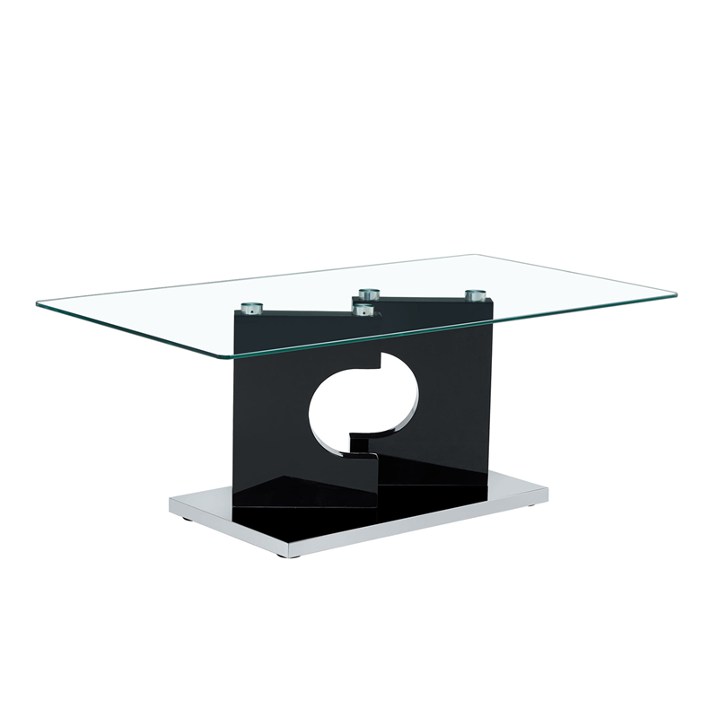 โต๊ะกาแฟหน้ากระจกทรงรีขัดเงาแบบโมเดิร์น สีดำ ราคาโรงงานโดยตรง