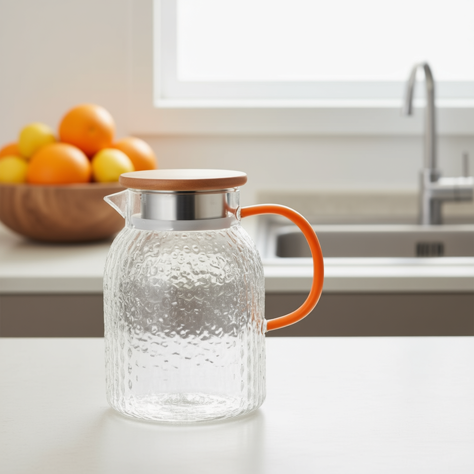 เหยือกน้ำแก้วความจุขนาดใหญ่พร้อมฝาปิดสำหรับใช้ในครัวดีไซน์เรียบง่าย