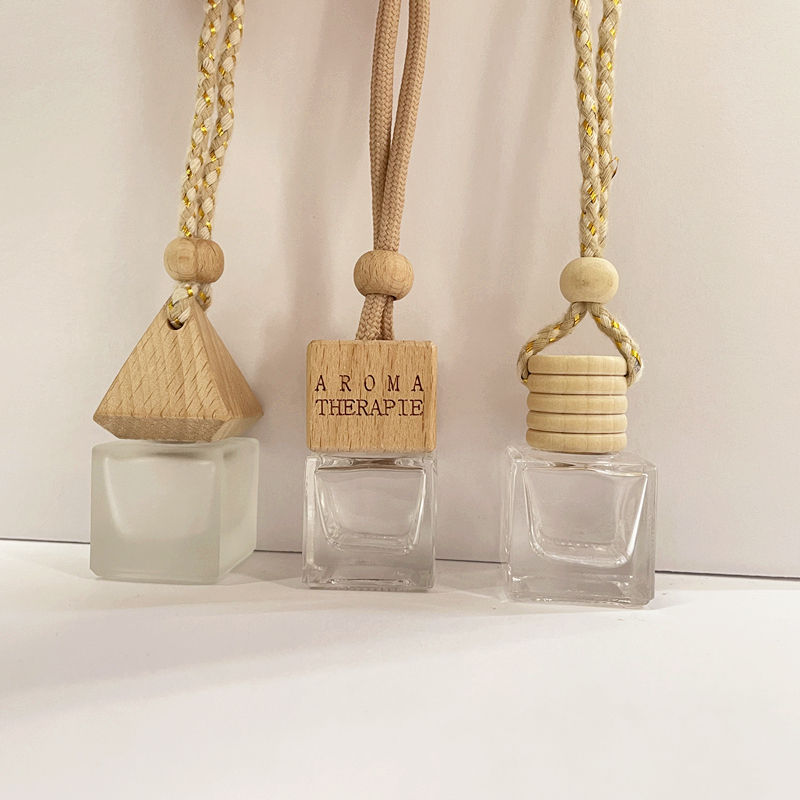 ขวดแก้วสลักโลโก้สี่เหลี่ยมกลมขวดน้ำหอมรถยนต์เทียนหอมขวดปรับอากาศฝาไม้