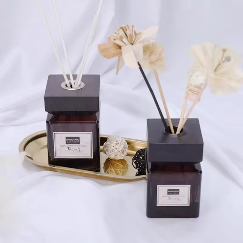 ก้านไม้หอมแก้วแบบไม่ใช้ไฟ ทำมือ สำหรับตกแต่งบ้าน ห้องนอน รูปทรงสี่เหลี่ยมโปร่งแสง ใช้งานได้ 3-5 เดือน
