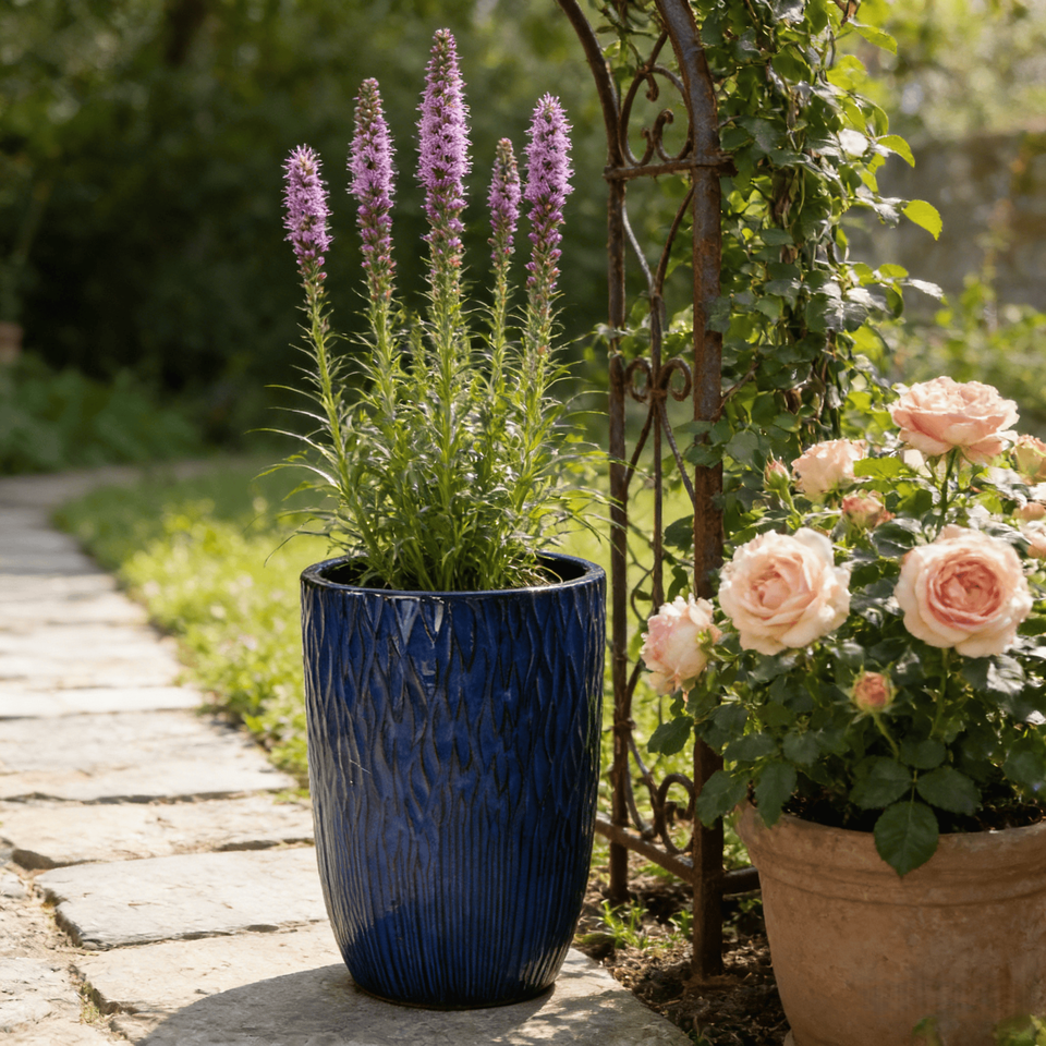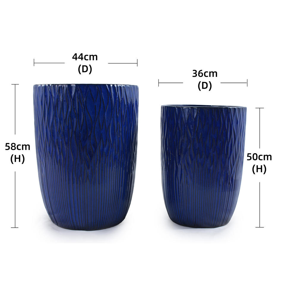 กระถางดอกไม้เซรามิกเคลือบสีน้ำเงินโคบอลต์ ลายเปลือกไม้ แนวตั้ง ลายริ้ว เป็นมิตรกับสิ่งแวดล้อม ทนทาน ใช้ได้ทั้งภายในและภายนอกอาคาร สำหรับสวน ทำจากดินเผา