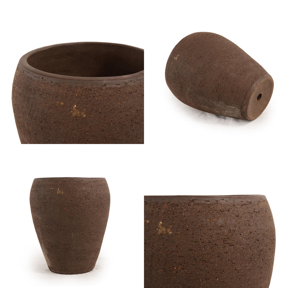กระถางดอกไม้เซรามิกเคลือบสีน้ำตาลเข้ม ผิวสัมผัสหยาบแบบชนบท สำหรับปลูกต้นไม้ในร่มและกลางแจ้ง กระถางดินเผา มีรูระบายน้ำ เป็นมิตรกับสิ่งแวดล้อม เหมาะสำหรับสวน