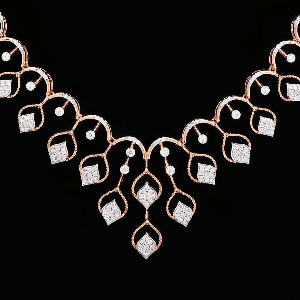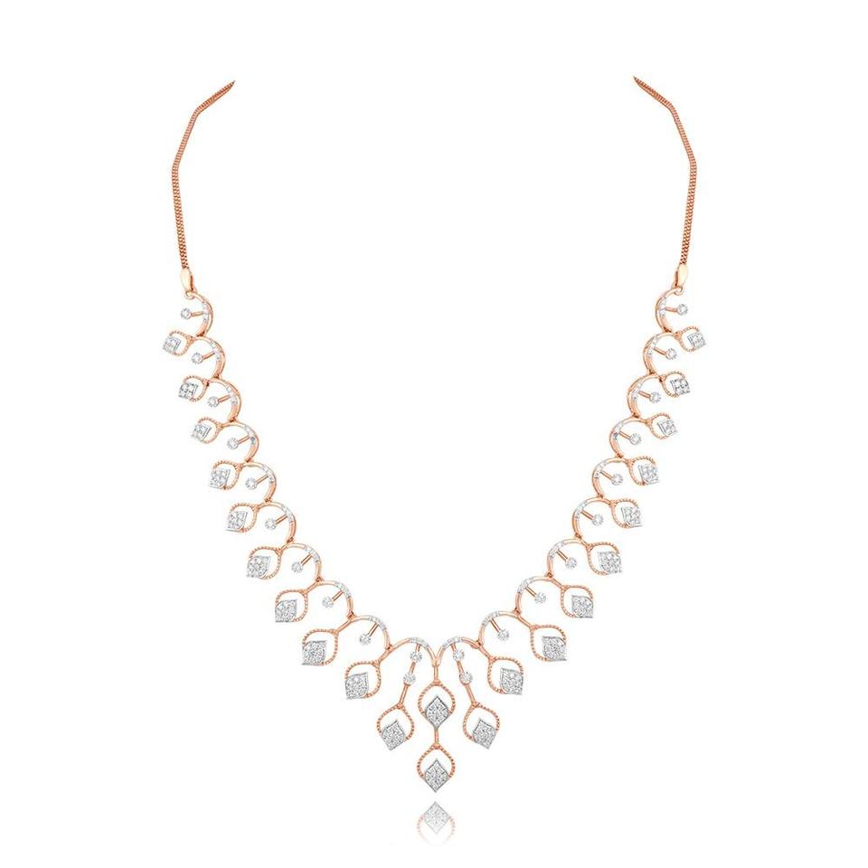 ชุดสร้อยคอเพชรเลี้ยงในห้องปฏิบัติการทรงใบไม้เปล่งประกาย ทอง 18 กะรัต ดีไซน์หรูหรา แรงบันดาลใจจากธรรมชาติ ตัดแต่งอย่างประณีต สีขาว เหลือง และโรสโกลด์ หรูหรา