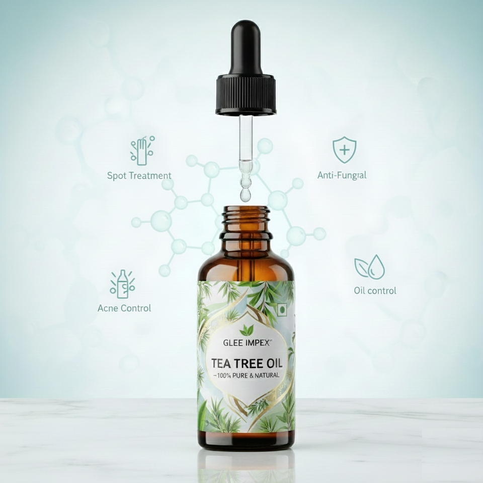 น้ำมันหอมระเหยทีทรีบริสุทธิ์จากธรรมชาติ ออร์แกนิก วีแกน ปราศจากการทดลองกับสัตว์ เกรดบำบัด จำหน่ายจำนวนมาก โดย Glee Impex India