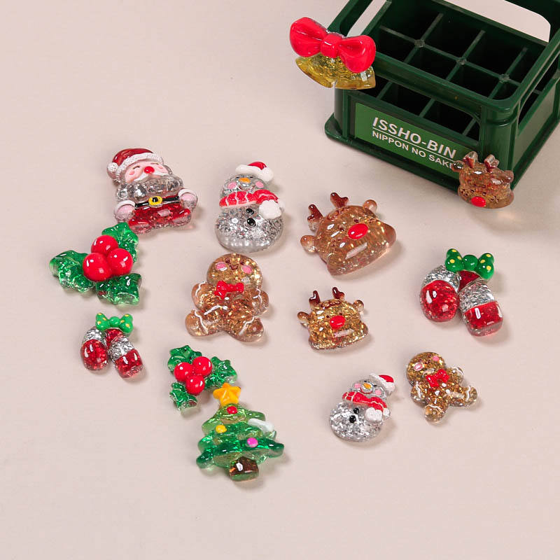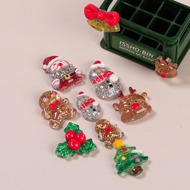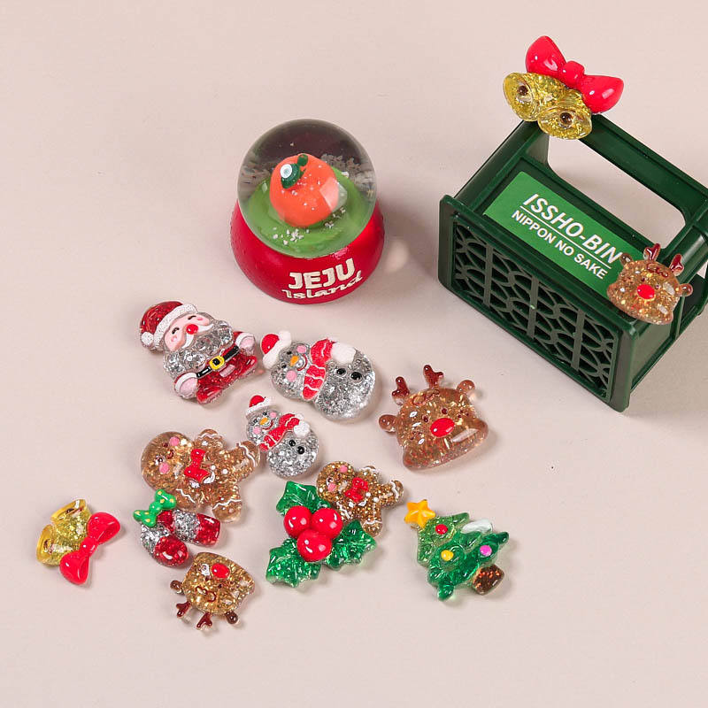ซานตาสโนว์แมนมีกากเพชรรูปการ์ตูนน่ารักๆรูปตัวการ์ตูนคริสต์มาสเรซินแบบหลังเรียบสำหรับทำมือ