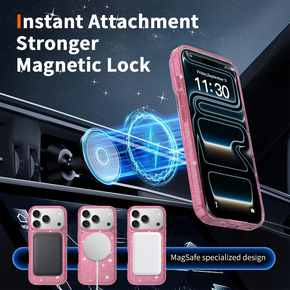 เคสโทรศัพท์กันกระแทกใสแบบแม่เหล็ก TPU+PC ประดับกลิตเตอร์ สำหรับ 17/16/15 Pro Max