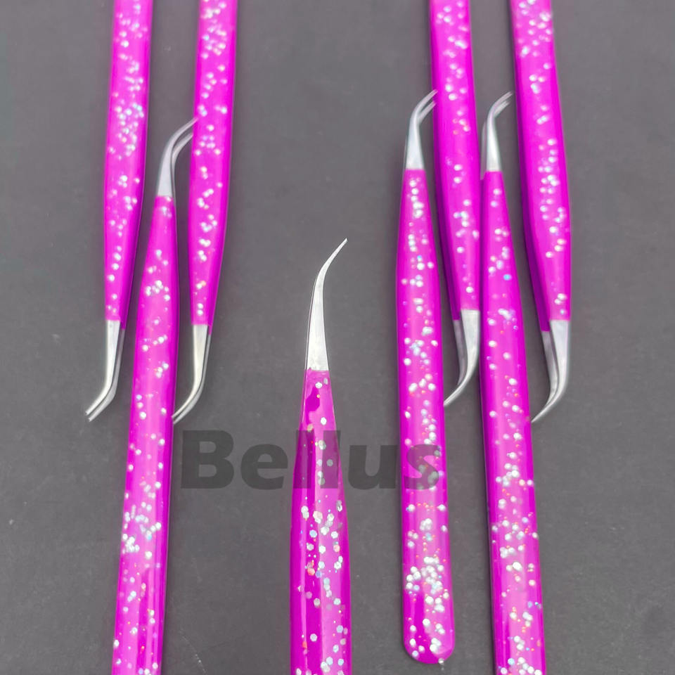 แหนบต่อขนตาแบบด้ามจับเจลเคลือบกลิตเตอร์พร้อมปลายสายไฟเบอร์อุปกรณ์ขนตาคุณภาพสูงสำหรับมืออาชีพขายส่ง