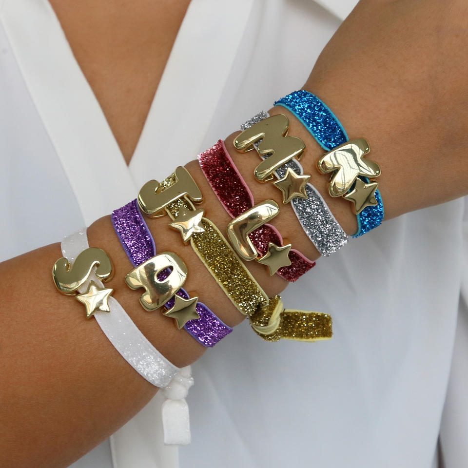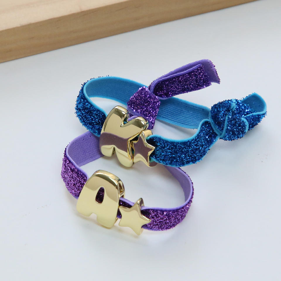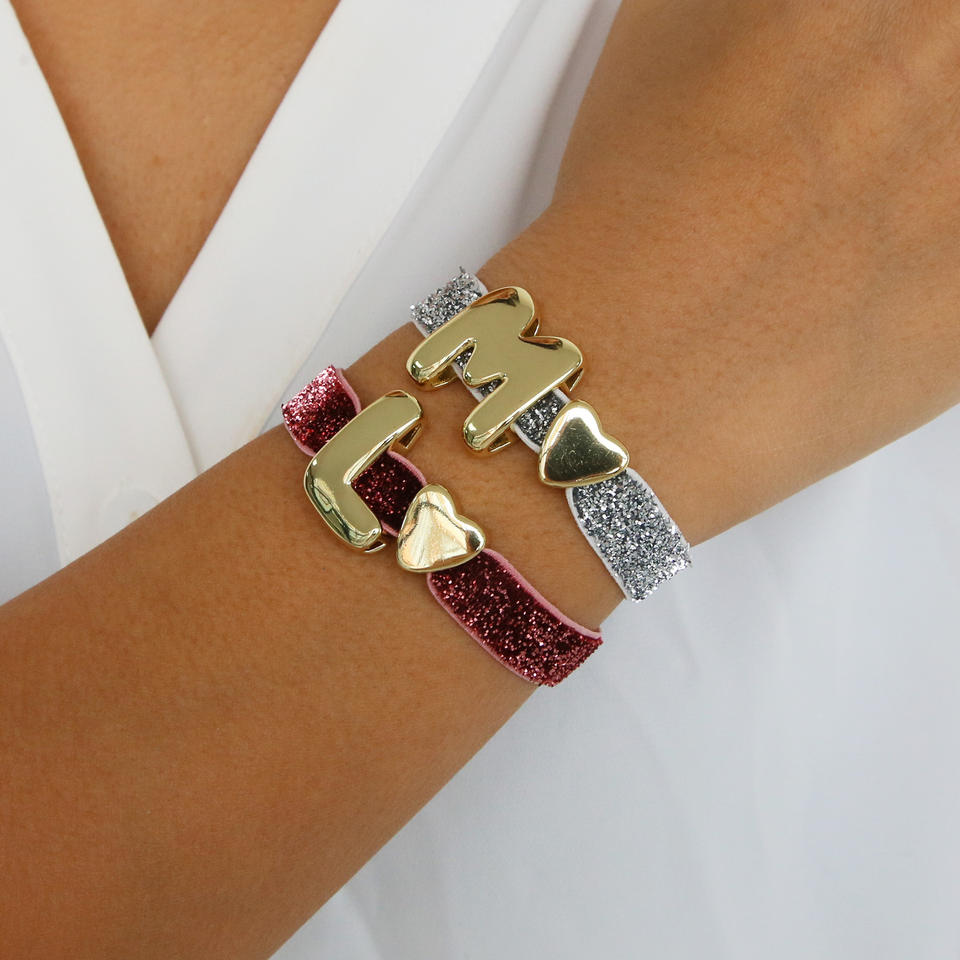 สายรัดข้อมือยางยืดประดับกลิตเตอร์ ตัวอักษร หัวใจ ของขวัญสำหรับเพื่อน งานปาร์ตี้ คู่รัก