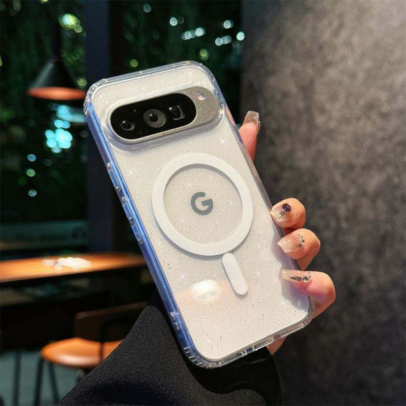 เคสใสแม่เหล็กแบบมีกลิตเตอร์สำหรับ Google Pixel 9 Pro XL 9Pro รองรับการชาร์จไร้สายแบบ Air Bag วัสดุซิลิโคนนุ่มเงา ป้องกันการกระแทก