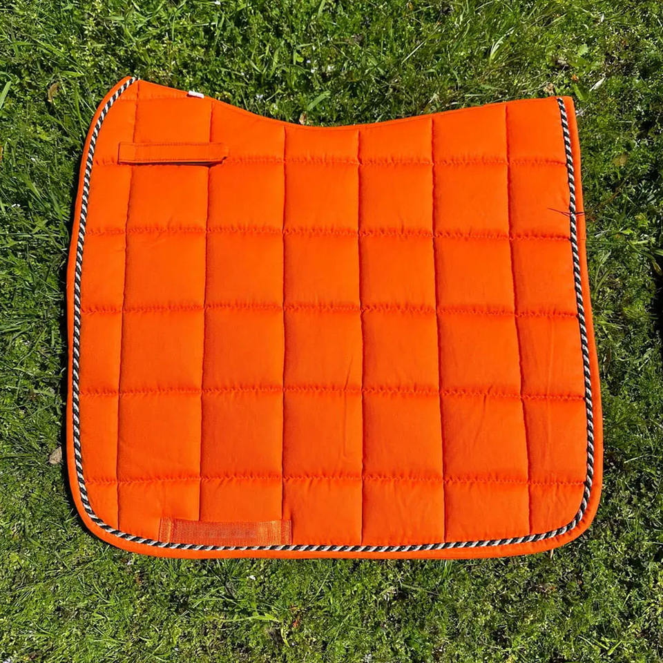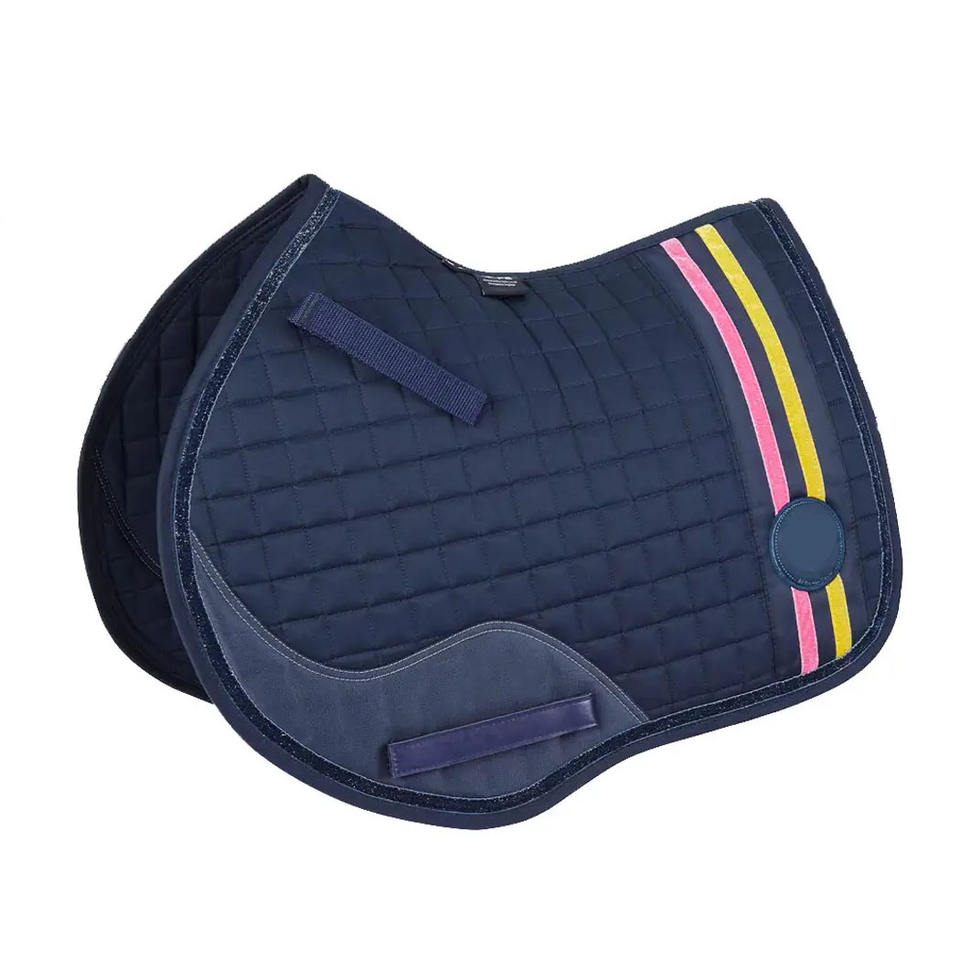แผ่นรองอานม้าแบบกลิตเตอร์ออมเบร ประดับด้วยผ้าปูอานม้าแบบมีประกายวิบวับ พร้อมซับในตาข่ายแห้งเร็วและขอบผ้าแบบเชือกคู่