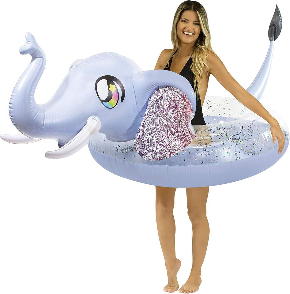 ห่วงยางว่ายน้ำรูปช้าง PVC แบบมีกลิตเตอร์ ขนาดใหญ่ สำหรับผู้ใหญ่