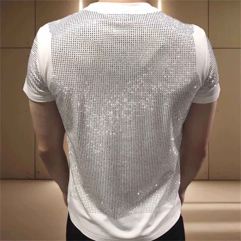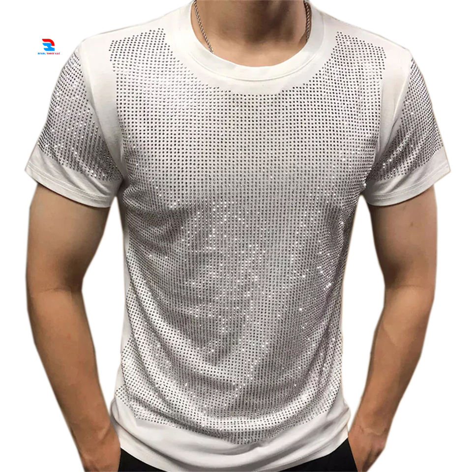 เสื้อทีเชิ้ตพลอยเทียมกากเพชรสำหรับผู้ชายเสื้อ100% ผ้าฝ้ายคุณภาพสูงเสื้อสำหรับวิ่งจ๊อกกิ้งเสื้อวิ่งจ๊อกกิ้งสำหรับผู้ชายเสื้อพลอยเทียมแวววาว