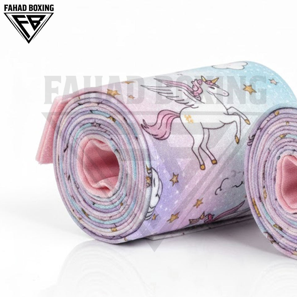 ผ้าพันมือกลิตเตอร์สตาร์จูเนียร์ สีชมพูและสีม่วง ผ้าพันแผลยืดหยุ่นพร้อมผ้าฝ้ายโฮโลแกรมทนทาน อุปกรณ์ฝึกซ้อมมวย