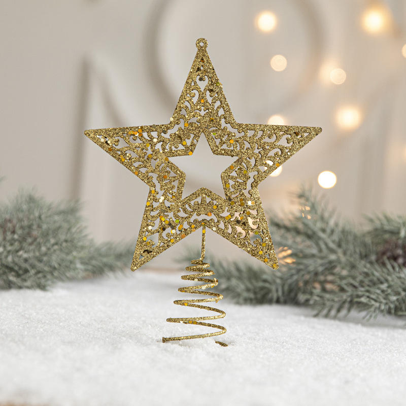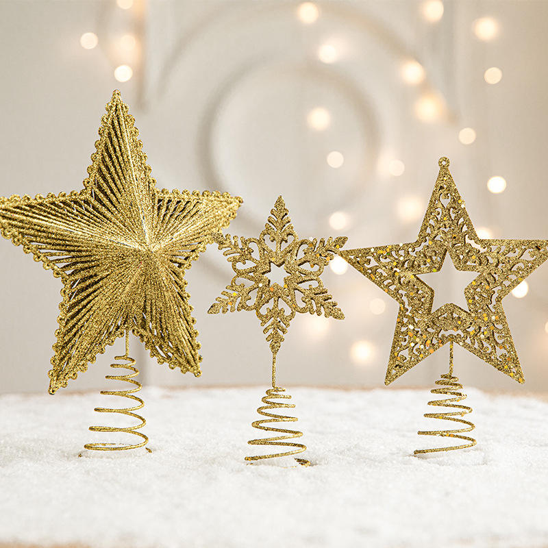 กลิตเตอร์สตาร์ ตุ๊กตาประดับยอดต้นคริสต์มาส ของตกแต่งต้นคริสต์มาส ของประดับตกแต่งเทศกาลวันหยุด สีทอง