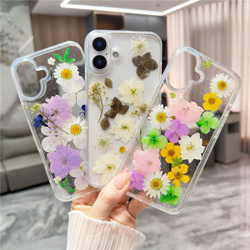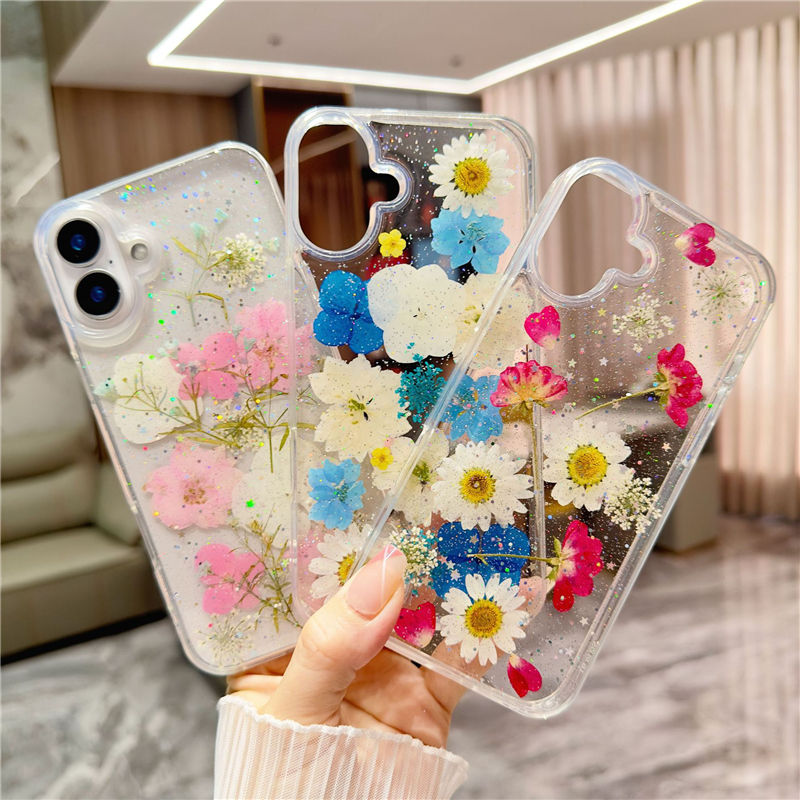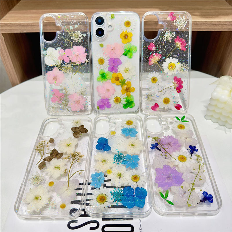 เคสโทรศัพท์กันกระแทกแบบใสลายดอกไม้ผีเสื้อวิบวับ TPU สำหรับ iPhone 17 Pro Max ขายส่งเคสโทรศัพท์สำหรับ 16 Plus 15 14