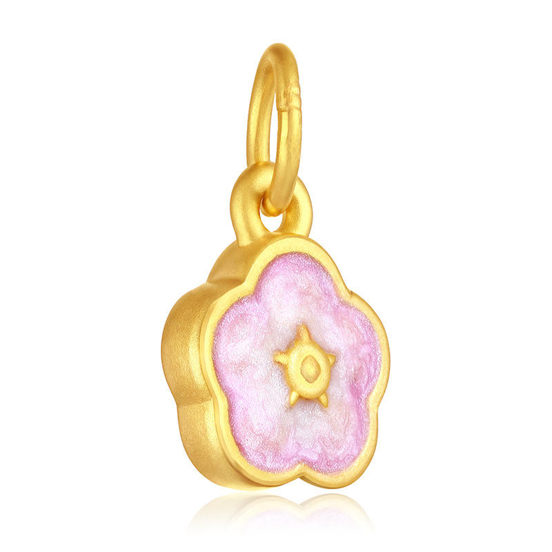 งานฝีมือเคลือบกลิตเตอร์24K ทำจากทองแท้จี้ดอกพีชสีชมพูจี้ทองคำบริสุทธิ์เครื่องประดับระดับไฮเอนด์