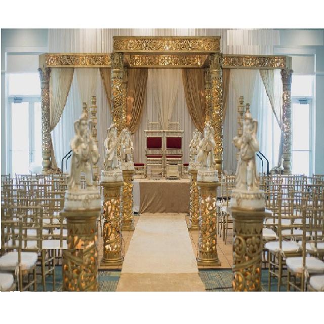 Mandap สีทองระยิบระยับสำหรับ Mandap งานแต่งงานแบบดั้งเดิมสำหรับแรงบันดาลใจในพิธีแต่งงานของชาวฮินดู
