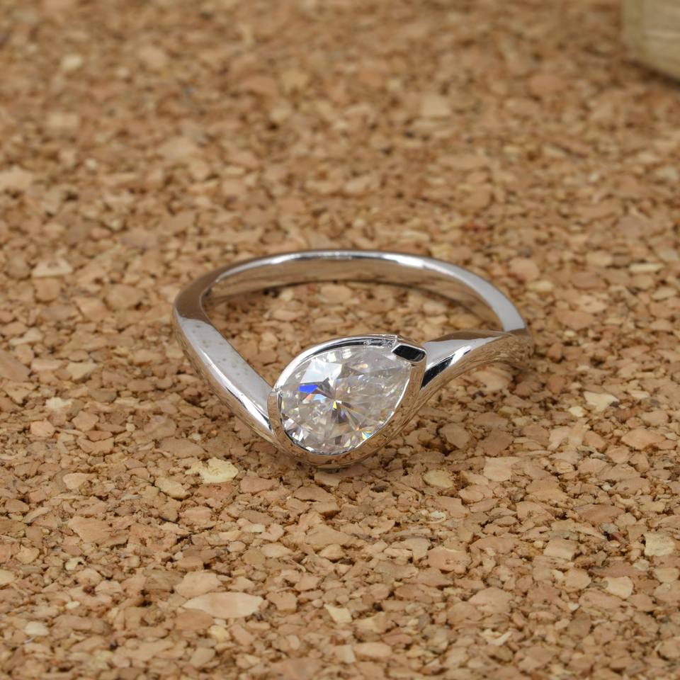 แหวนเพชรเม็ดเดี่ยวทรงลูกแพร์เคลือบทอง 10K ระดับ VVS2 ได้รับการรับรองจาก IGI ดีไซน์โดดเด่น ประดับด้วยเพชรเม็ดเล็กๆ ระยิบระยับ เหมาะเป็นของขวัญแต่งงานสุดหรูสำหรับผู้หญิง