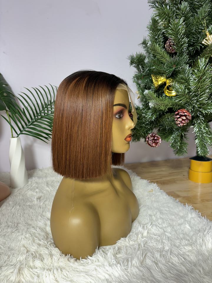 วิกผมบ๊อบแบบลูกไม้ด้านหน้า ทำจากผมแท้ เกรดเวอร์จิ้นเรมี่ สำหรับลูกไม้สี 1B/27 วิกผมบ๊อบสั้น