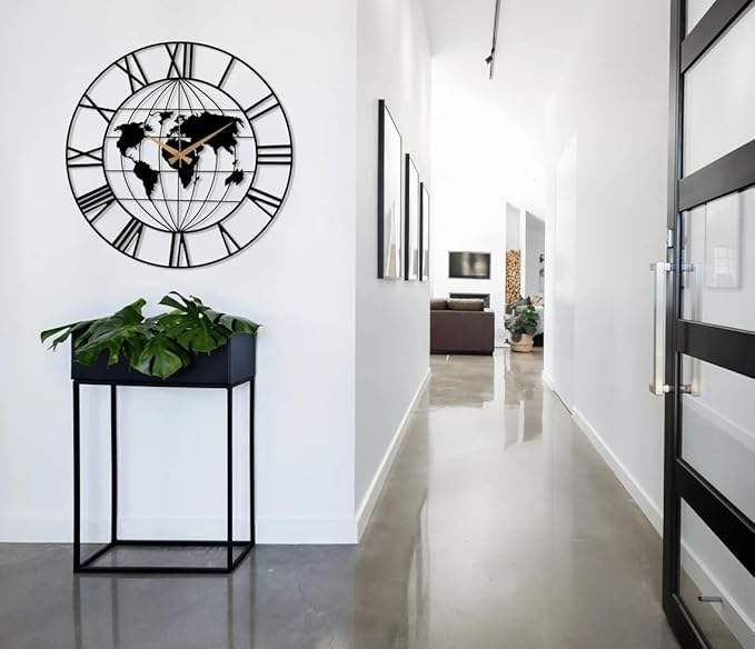 นาฬิกาแขวนผนังลายแผนที่โลก ดีไซน์แผนที่โลกแบบควอตซ์เหล็ก ธีมการเดินทาง งานแต่งงาน โครงร่างทวีป ธุรกิจระหว่างประเทศ