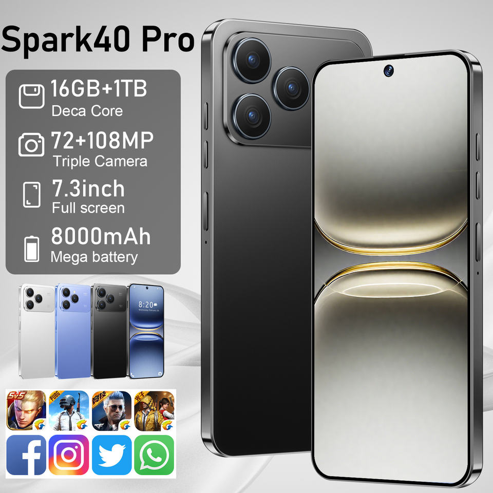 Spark40 Pro 16GB + 1TB 8000mAh แบตเตอรี่ขนาดใหญ่มาก LTE CDMA ชาร์จเร็ว7.3นิ้ว90Hz 2K เต็มหน้าจอทุกสภาพอากาศ
