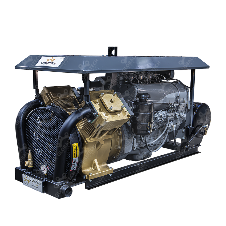 รถพ่วงบรรทุกซิลโอดีเซลคุณภาพสูง Globaltech พร้อมเครื่องอัดอากาศแบบพกพาสำหรับบรรทุกซีเมนต์ ขนาดลูกสูบ 220 มม.