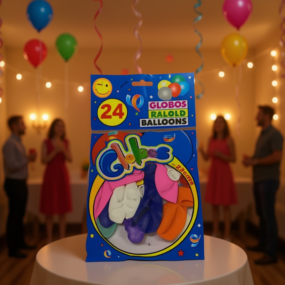 ลูกโป่งกลม 24 ชิ้น หลากสี สำหรับตกแต่งงานปาร์ตี้
