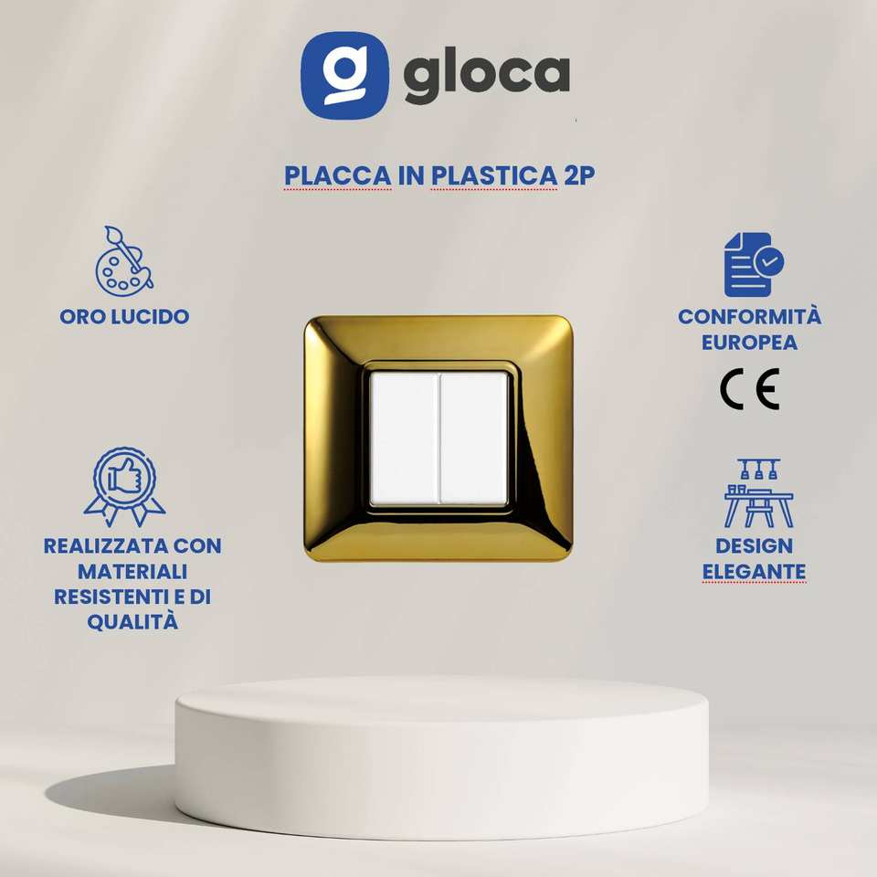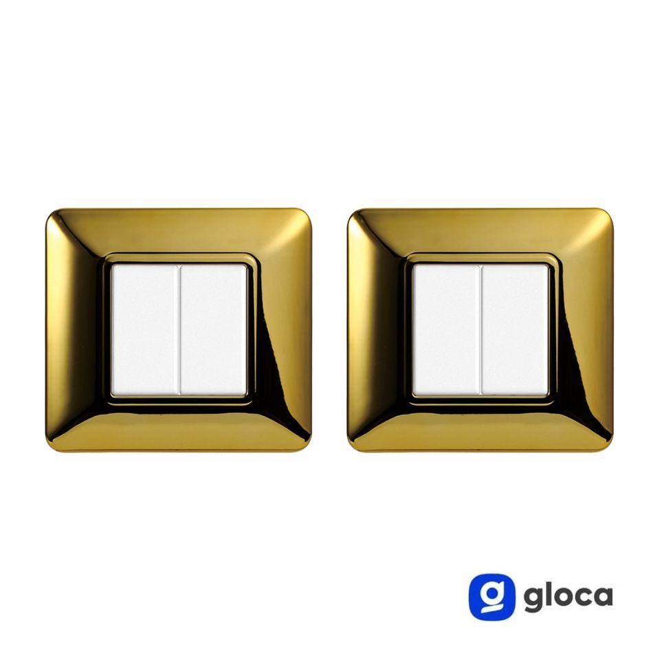 โกลก้า สวิตช์ติดผนัง 2 ช่อง แผ่นพลาสติก สีทองเงา ติดตั้งง่าย ใช้ได้กับมาติกซ์